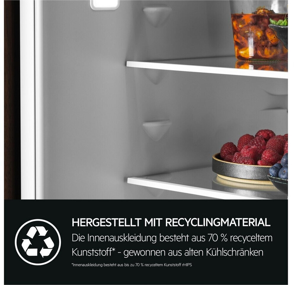 Az AEG hűtőszekrények belső bevonata 70%-ban újrahasznosított műanyagból áll*. A régi hűtőszekrényekből származó műanyagot új hűtőszekrények gyártásához használják fel, így hozzájárulva a hulladék megelőzéséhez a körforgásos gazdaságon keresztül.
